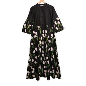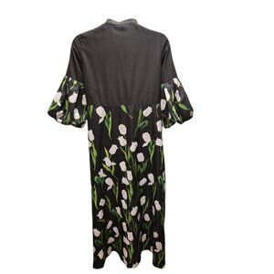 Uoozee Womens Size XL Floral Print Button Front Dress/ Trench Balloon Sleeves