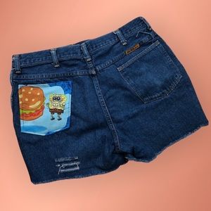 UpCycled Cartoon Pocket Cut Offs Spongebob Square Pants 90's Fabric