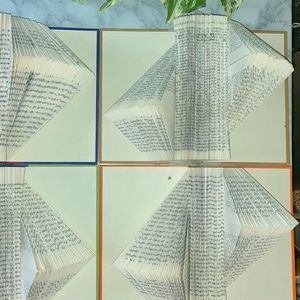 These unique upcycled Books have every single page folded turned into an art piece that will add the perfect touch to any room. Hang them on the wall as decor, or display on on a table or shelf as an accent. The pictures are a representation of the type books you will receive. When you order I will fold a recycled book in the design shown. I use recycled books to reduce waste and create a unique upcycled piece of art. Purchasing a single book makes for an instant conversation piece. Selecting multiple books to create a gallery for your space is an instant showstopper.