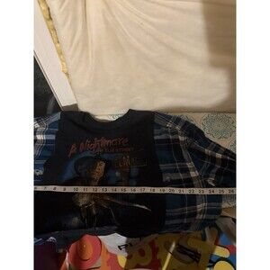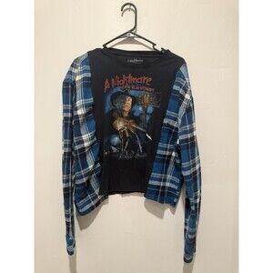 Upcycle Grunge Oversize Crop Halloween Nightmare on Elm Street Flannel Top M/L