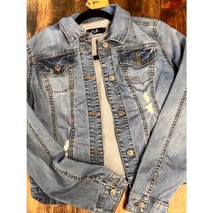 one of a kind Upcycled ACDC Jean Jacket Size Small