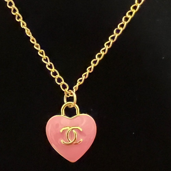 CC heart charm on 18” stainless steel gold plated chain. (bubble gum pink)