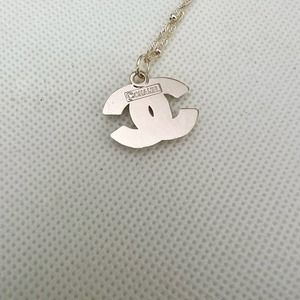 Upcycled authentic Chanel button made as a pendant on a new unbranded gold over silver Italian Singapore bead chain.