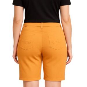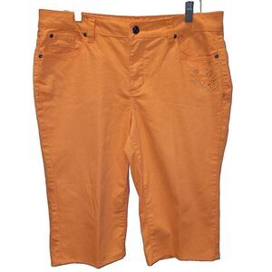 Upcycled Basic Additions Size 12 Orange Shorts Floral Embroidered Rhinestone