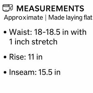 Waist: 18–18.5 in with 1 inch stretch