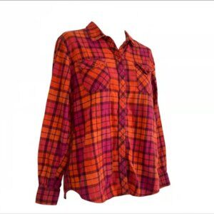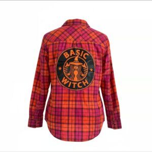 This one-of-a-kind orange and magenta flannel features a bold “Basic Witch” back patch that gives major fall-season attitude. Lightweight, soft 100% cotton with a relaxed, cozy fit.