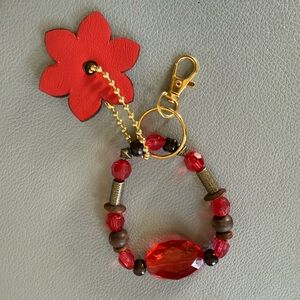 Upcycled Beaded Bag Charm, Keychain, Bracelet Leather Flower