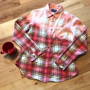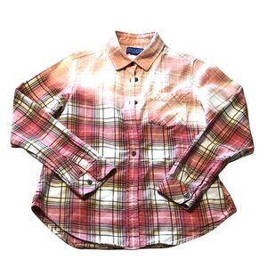 Upcycled Bleached Flannel Shirt, Women’s Size Small: Inspirational, Red Plaid