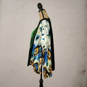 This unique upcycled Bob Marley tee presents a wonderful blend of comfort and style for any occasion. The oversized, flowy kimono sleeves add a touch of elegance to the design. Crafted from a soft cotton-rayon blend, it promises a breathable and relaxed fit. This one-of-a-kind creation is perfect for a festival or concert. Its distinctive design ensures you'll stand out.