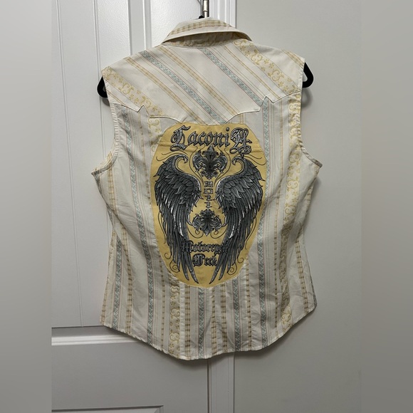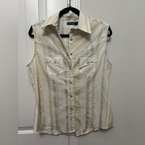 Sleeveless button down with sewed on t shirt