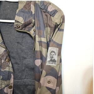 Upcycled Camo Jacket with Embroidered Portrait Patch