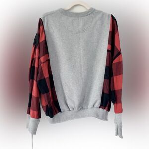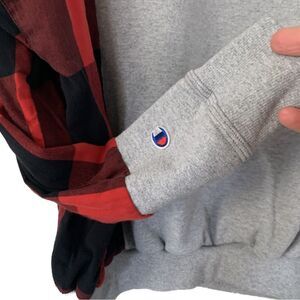 Upcycled Champion Sweatshirt Flannel Sleeves Sz XL
