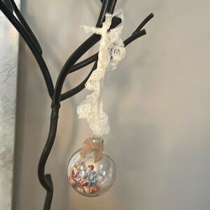 1 with a tiny black and red checkered bow and a black ribbon hanger with a delicate accent - there is a special surprise in this particular ball.-