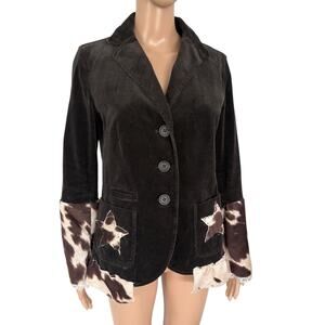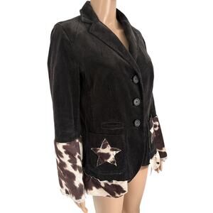 Upcycled Corduroy Blazer Cow Print Star Patch Western Boho Cowgirl Jacket Brown
