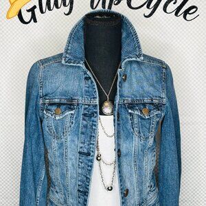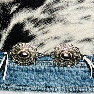 Upcycled Cropped B/W beautiful genuine Cowhide Jean Jacket w/silver concho "S"