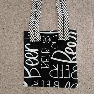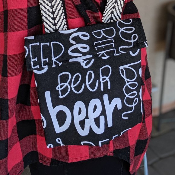 Upcycled beer-themed shoulder bag