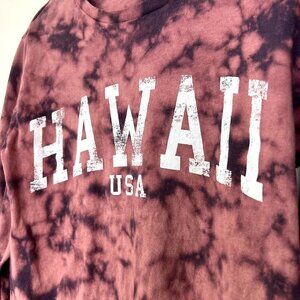 Upcycled Custom Hawaii USA Bleach Tie Dye Long Sleeve Graphic Tee Tshirt Small