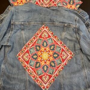 This stylish denim jacket is perfect for any fashion-conscious woman. Made from high-quality denim fabric, it features a classic blue color that is both versatile and timeless. The jacket has been upcycled to make it stylish. The jacket is of size M and has a regular fit, making it ideal for everyday wear. With its Old Navy brand label, this jacket is a great addition to any wardrobe. Its denim outer shell material and fabric type ensure that it is durable and long-lasting. This jacket is perfect for women who want to make a fashion statement while staying comfortable and stylish.