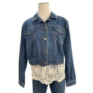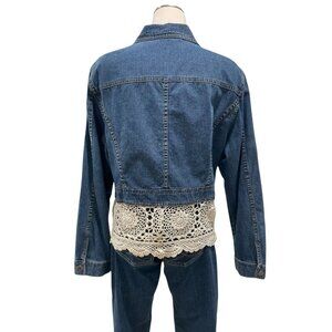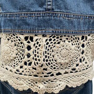 Upcycled Denim Jacket Boho Lace Crochet Hem Vintage Western Y2K Cottage Trendy