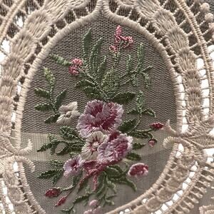 Upcycled Denim Jacket Embroidered Lace Open back beige Size XL/XXL Floral