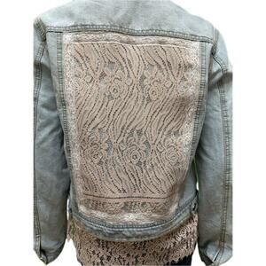 Upcycled Denim Jacket Pink Lace Hem & Back Panel Large