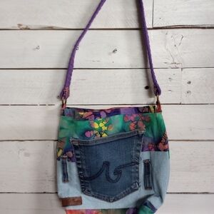 Upcycled Denim Purse Shoulder Bag with Upcycled Lining, Boho Patchwork