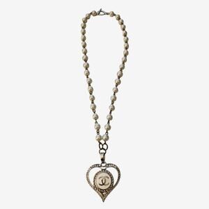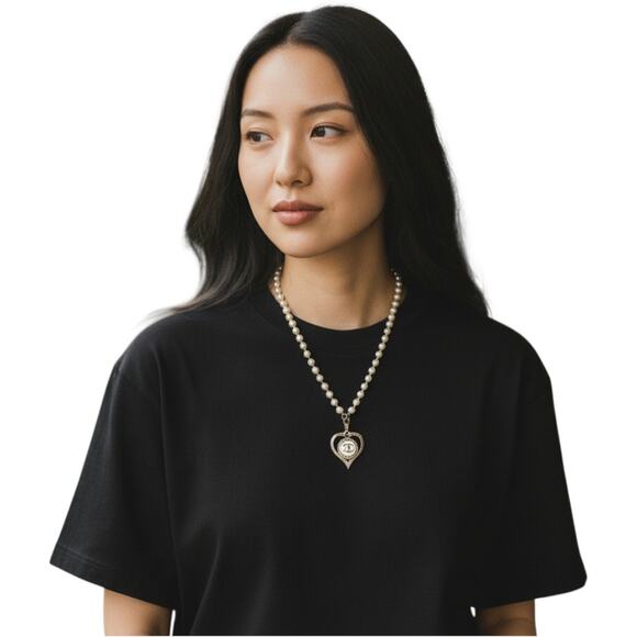 Upcycled Designer Button Heart Pendant on Pearl Rosary Style Necklace