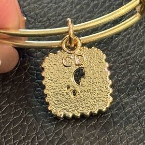 Charm is stamped “CD” on the back and is an authentic Dior charm. Bracelet is a genuine Alex & Ani adjustable brass bangle.