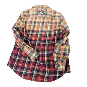 Upcycled Distressed Flannel with "Fire Piranha" Embroidered Patch Large