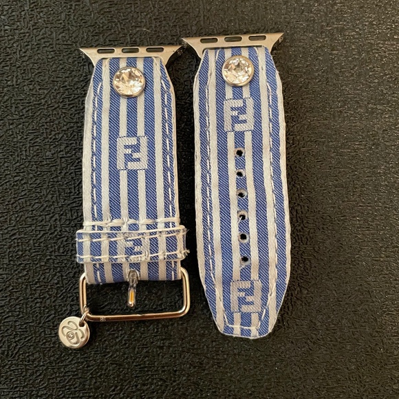 Upcycled Fendi blue pinstriped Apple Watch band size 1