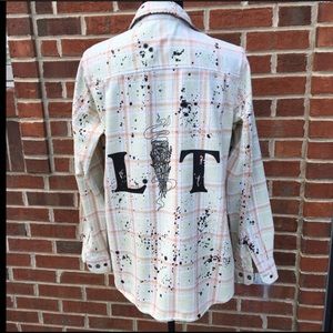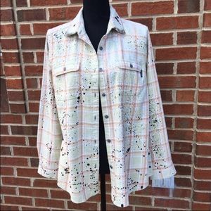 Upcycled Flannel Shirt (Light green & kinda rusty orange Tan plaid)