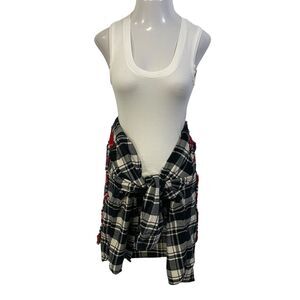 This is a pre-owned, up-cycled, re-worked garment, combining a Flannel and a Tee.