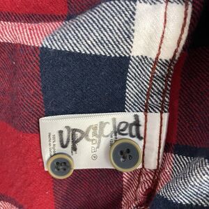 This is a pre-owned, up-cycled, re-worked garment, combining a Flannel and a Tee with embellishment. It is intended to wear as a Layering Piece - If it is shown with a T-Shirt or Tank - it is NOT being sold with the T-Shirt/Tank. The Photo is intended to convey the styling idea of this garment.