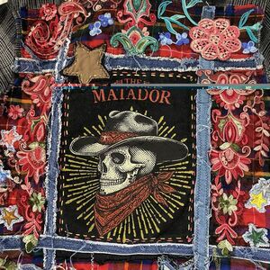 * Rear Panel Upcycled Graphic Tee Panel Patchwork Style - Cowboy Skull Matador