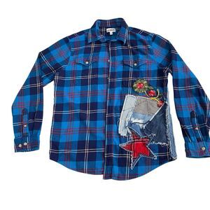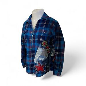Upcycled Flannel Shirt Womens Large Shacket Ghostface Grunge Scary Movies Blue