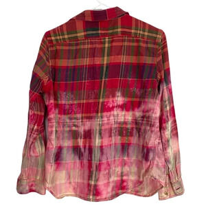 Upcycled Flannel Shirt Womens Size Medium Custom Bleached Plaid Boho Button Down
