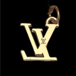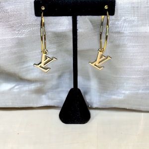 Gold 40mm hoop earrings with Stamped LV 18mm charms. These charms were added to the earrings