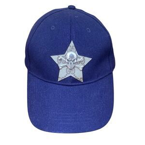 Upcycled Gucci Canvas Logo Navy Blue Felt Baseball Hat/Cap w/ Silver Skull