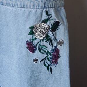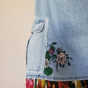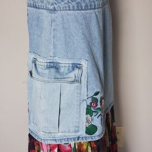 Upcycled H&M X Coachella Boho Cottagecore Embroidered Floral Denim Maxi Skirt in wonderful condition. No flaws. Non smoking, no pet home.