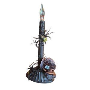 Upcycled Halloween Candle Window Light Electric flicker bulb Black Spider Eye Rose Candolier