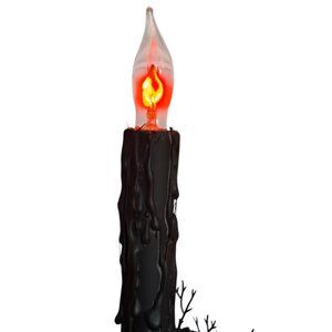 Upcycled Halloween Candle Window Light Electric flicker bulb Black Spider and R