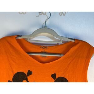 Upcycled Halloween Skeleton Skull T-Shirt Medium Orange Fringe Distressed