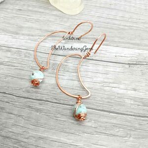 Upcycled Hammered Copper Crescent Moon Dangle Earrings, Gemstone Agate 2.5"