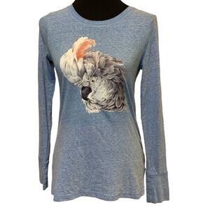 Upcycled Hand Printed Medium White Cockatoo Parrot Ukraine Artist Fundraiser Tee