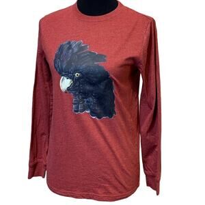 Upcycled Hand Printed Womens Large Black Cockatoo Parrot Ukraine Fundraiser Tee