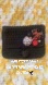 This dark brown accessory bag by American Eagle Outfitters is embellished with yo-yo fabric circles in cream, brown, black & orange with the center feature being a red & orange vintage owl pin. Other decorations include vintage buttons & an earring.