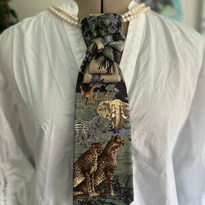 Upcycled Ladies Necktie silk Necktie Necklace - Africa. Does NOT come with chain/pearls. If you want to include this, this would be extra.