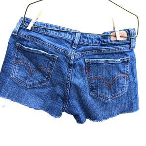 Upcycled Levi’s Superlow Denim Cutoff Jean Shorts, Painted Frayed, Size 9 Junior