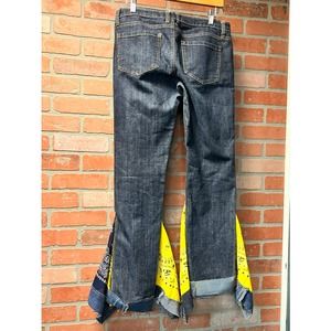 Upcycled Maize and Blue Bell Bottoms Size 30