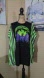 This upcycled Maleficent tee shirt is a unique garment, blending comfort and style seamlessly. The green, black, and white striped kimono sleeves add a striking visual contrast. Crafted from a cotton-poly blend, it offers a soft and durable wear. This one-of-a-kind piece features an oversized fit, promising a relaxed and fashionable silhouette. With its distinctive design, this tee shirt is sure to make a statement.